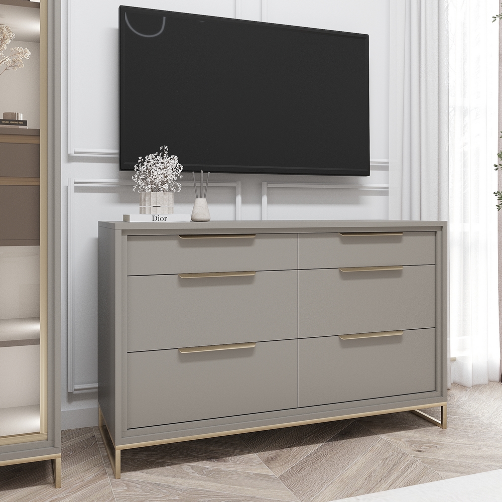 Основним елементом колекції є комод на 6 шухляд Лао, виконаний із міцного ДСП товщиною 18 мм. Його розміри становлять 760x1200x450 мм, що робить його ідеальним рішенням для зберігання різних речей. Стриманий дизайн і продумані деталі роблять цей комод функціональним та стильним акцентом у будь-якій вітальні.