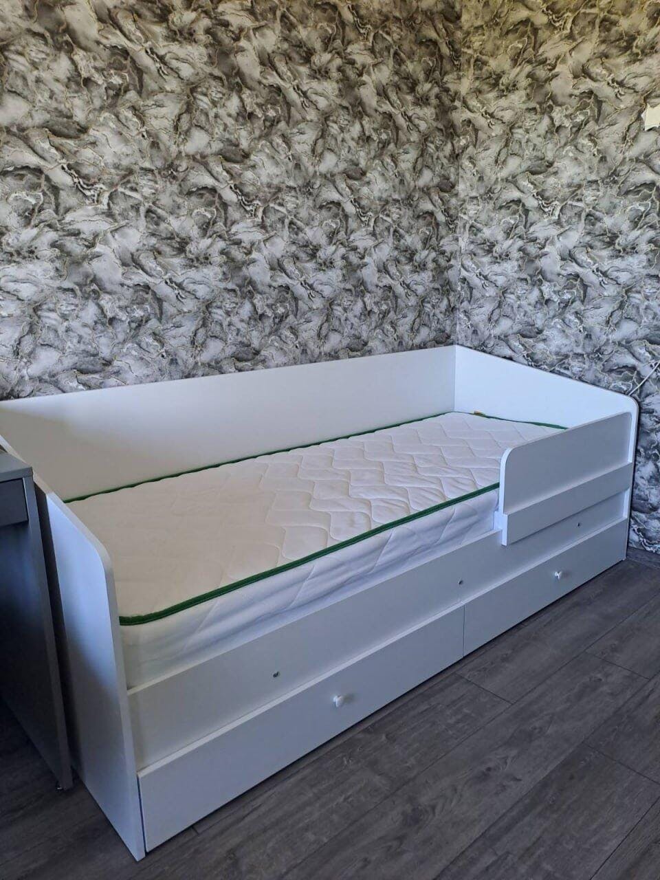Стильная односпальная кровать станет отличным выбором для обустройства комнаты ребенка. Благодаря универсальному дизайну, она подойдет как для малышей, так и для подростков, обеспечивая комфорт и практичность на протяжении многих лет. Кровать оснащена двумя вместительными ящиками на телескопических направляющих, что позволяет удобно хранить игрушки, постельные принадлежности или одежду, экономя пространство в комнате.