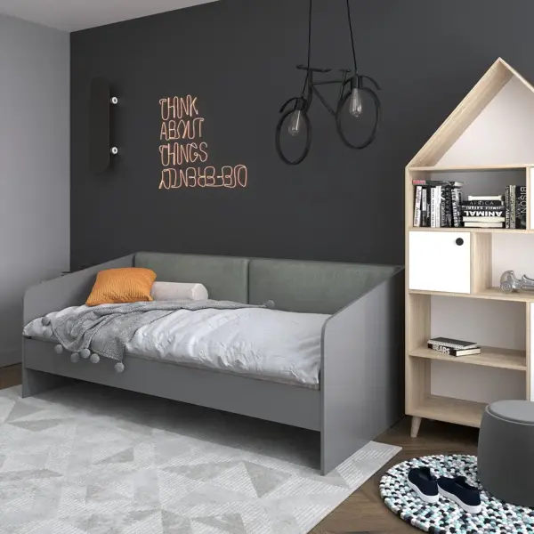 Стильная детская односпальная кровать Лайт – идеальное решение для комфортного сна вашего школьника. Мягкая боковая стенка добавляет элегантности и гарантирует дополнительную безопасность и уют для спокойного отдыха подростка. Основа под матрас изготовлена из деревянного бруса с ламелями, расстояние между ламелями 5 см, весовая нагрузка -110 кг Прекрасно подойдет как для малышей, так и для подростков.