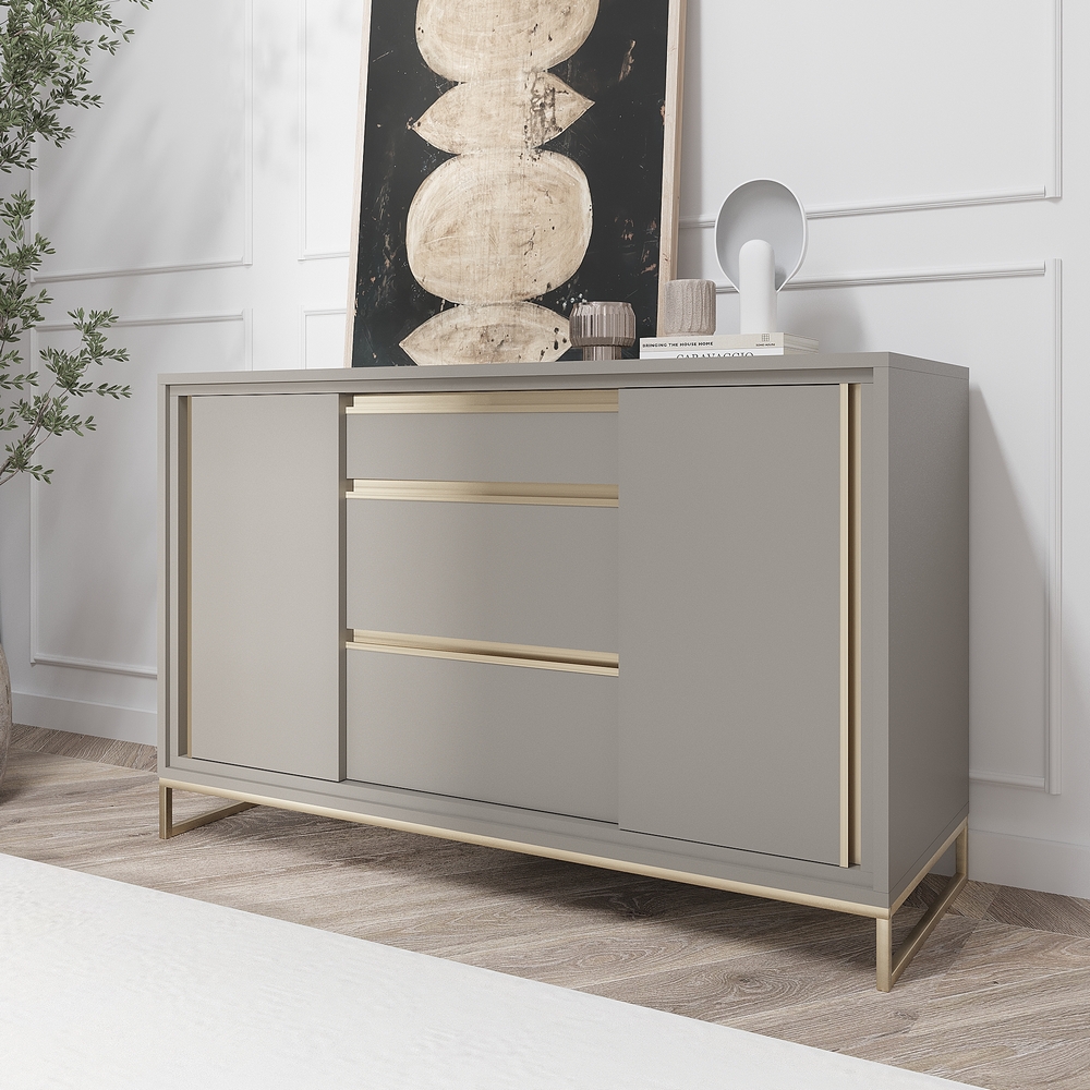 Есть возможность приобрести с черными и золотыми вставками. Этот комод станет удачным дополнением к любому современному интерьеру, где сочетание натуральных и элегантных цветов создает комфорт и стиль.