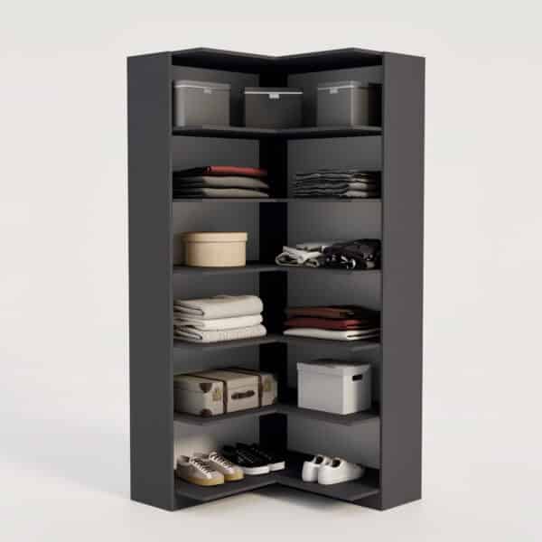 Модуль гардеробный 2100х900х900. Корпус изготовлен из ламинированного ДСП 16 мм. Это модульная система для хранения одежды, обуви и аксессуаров. Модули можно подбирать и располагать так, чтобы максимально использовать доступное пространство, создавая функциональную гардеробную. В этой модели представлены полки для хранения одежды, аксессуаров и других личных вещей. Открытые гардеробные модули часто используют в современных интерьерах, поскольку позволяют легко видеть и выбирать одежду. Они могут быть установлены как в отдельной гардеробной комнате, так и вдоль стен в спальне. Доступны различные размеры этой модели, что позволяет подобрать необходимую вам гардеробную систему.