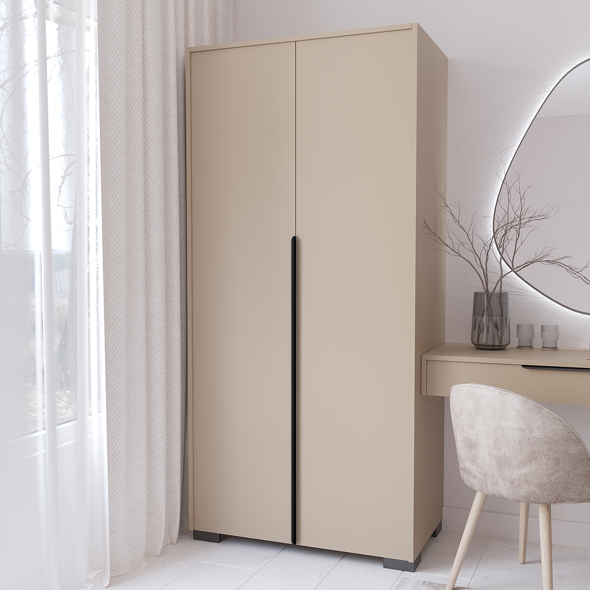 Распашной шкаф из коллекции “Рона” является идеальным выбором для тех, кто ищет стильное и функциональное решение для хранения одежды. С габаритами 2000x900x550 мм, этот шкаф предлагает достаточно пространства для размещения всех ваших вещей, помогая поддерживать порядок в вашей спальне. Основные характеристики шкафа: