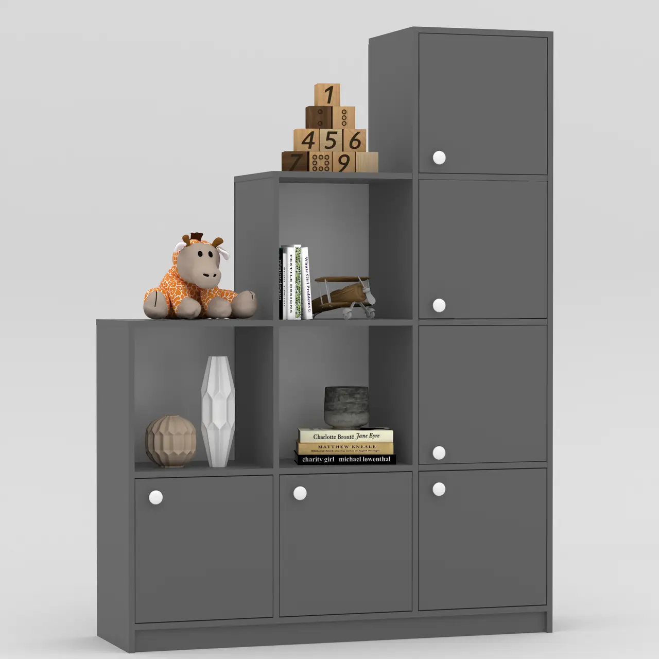 Стеллаж выполнен в оригинальном дизайне и может использоваться как в детской комнате, так и в офисе. Стеллаж имеет закрытые и открытые полки. Стеллаж для игрушек. Стеллаж деревянный. Стеллаж с полками. Стеллаж в детскую комнату. Купить книжный стеллаж для книг. Стеллаж для пола. Шкаф в детскую. Шкаф в детскую с полками.